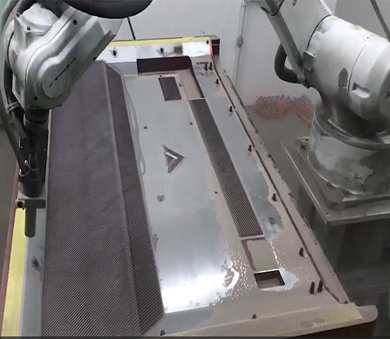 除五轴激光纹理加工外,我们也积极推进纹理制造各个流程上的数字化转型,如大型机械臂喷砂、数字化模具保护等。